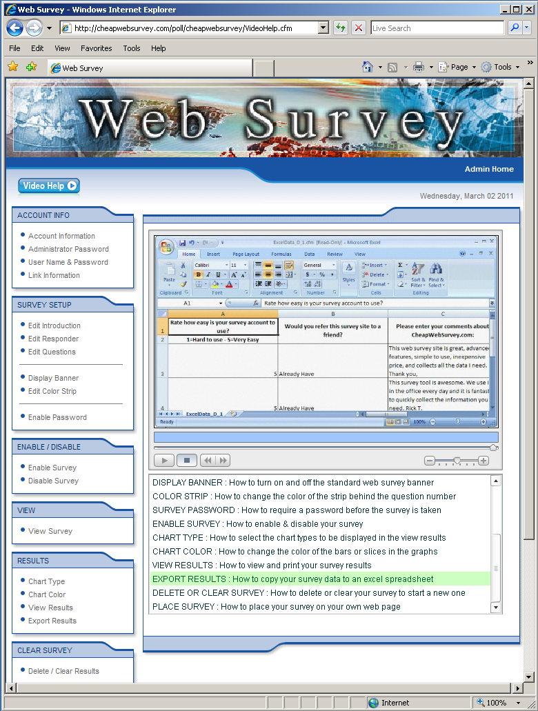 Service includes a video help library. This video library will walk your through step by step, each of the survey editing functions.